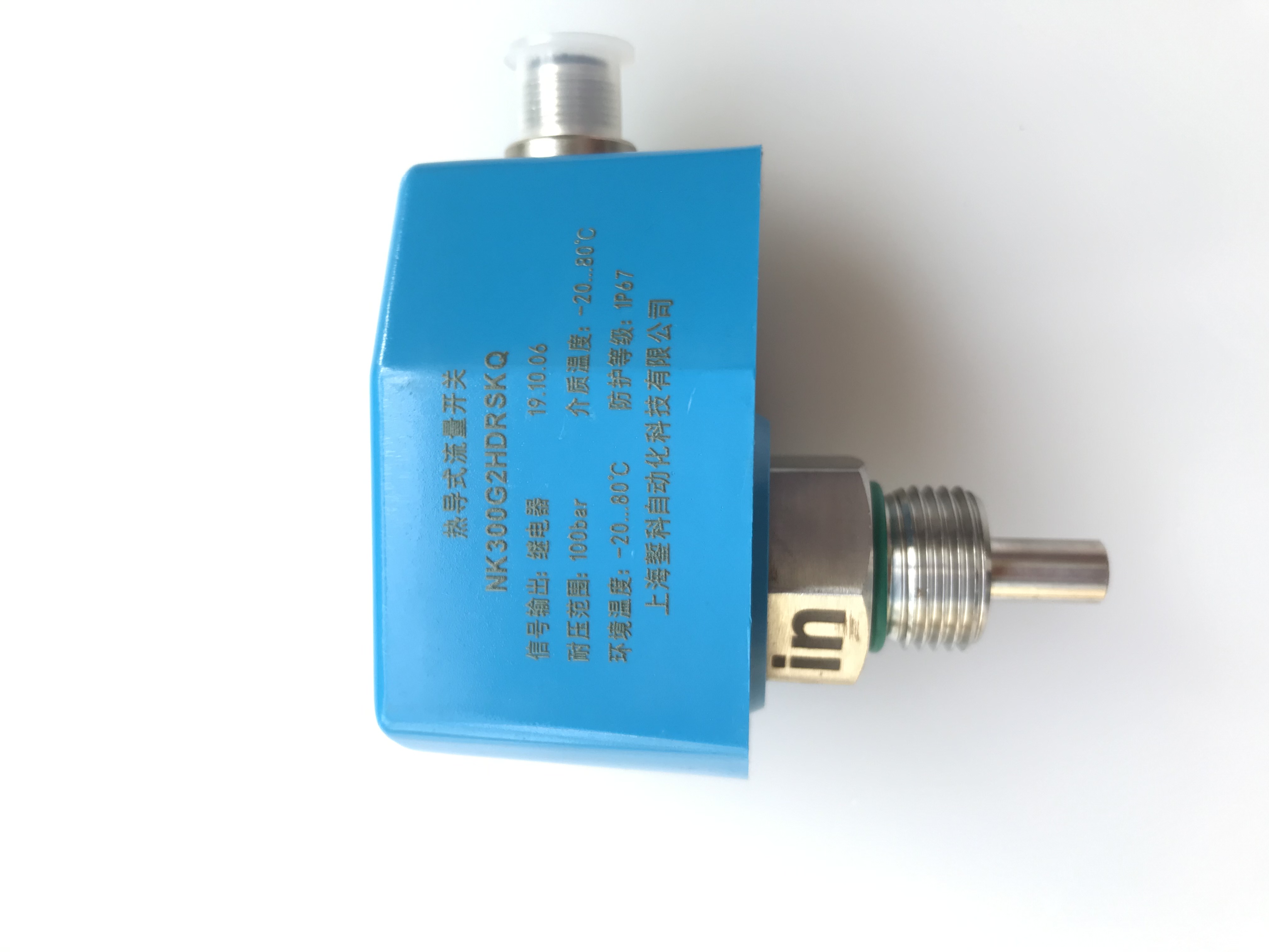 NOIKE熱導(dǎo)式流量開關(guān)是基于熱交換原理設(shè)計(jì)的。探頭內(nèi)置發(fā)熱模塊及感熱模塊,流量開關(guān)的熱傳導(dǎo)同介質(zhì)的流速密切相關(guān),測量時(shí),由發(fā)熱模塊發(fā)出熱量,如果管道內(nèi)沒有介質(zhì)流動,則感熱模塊接收到的熱量是一個(gè)固定值,當(dāng)有介質(zhì)流動時(shí),感熱模塊所接受到的熱量將隨介質(zhì)的流速變化而變化,感熱模塊將這溫差信號轉(zhuǎn)化成電信號,再通過處理器將其轉(zhuǎn)換為對應(yīng)的標(biāo)準(zhǔn)模擬量信號或接點(diǎn)信號輸出,流量開關(guān)通過這個(gè)信號對介質(zhì)的流速進(jìn)行顯示及控制。