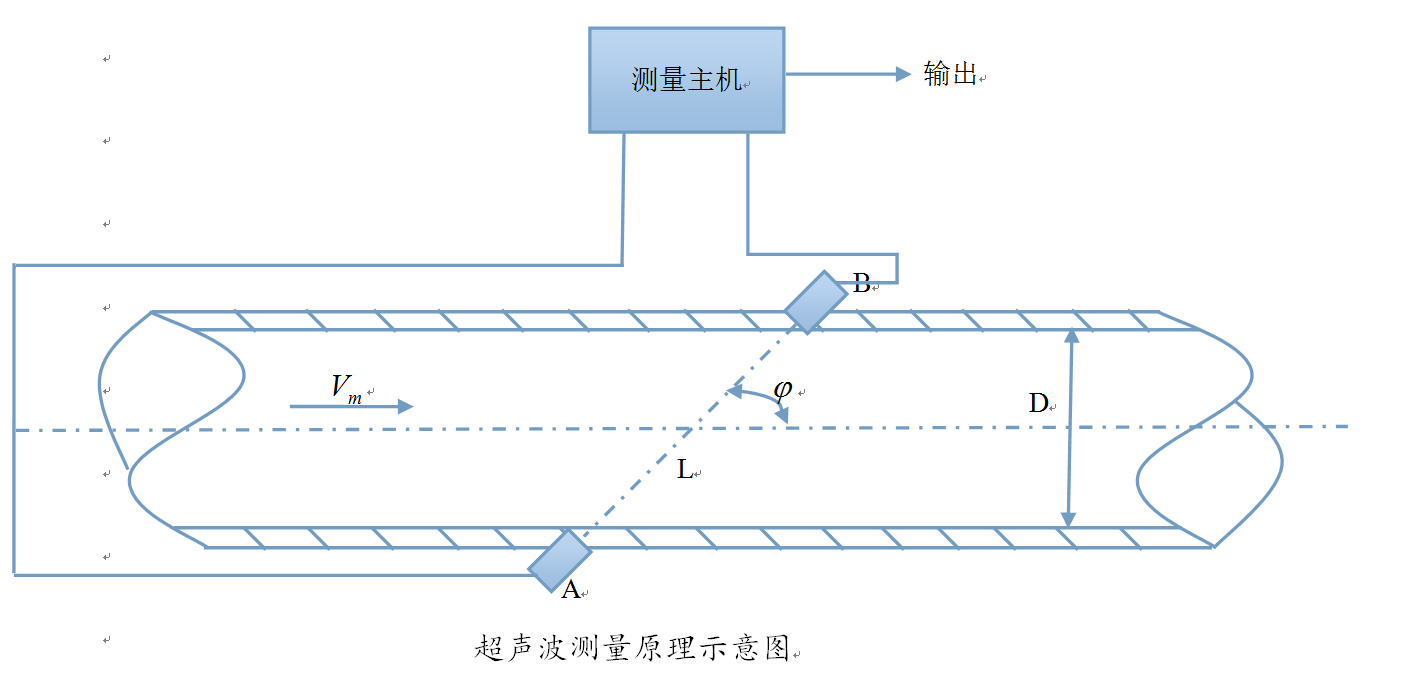 流量計以測量聲波在流動介質中傳播的時間與流量的關系為原理。通常認為聲波在流體中的實際傳播速度是由介質靜止狀態(tài)下聲波的傳播速度(