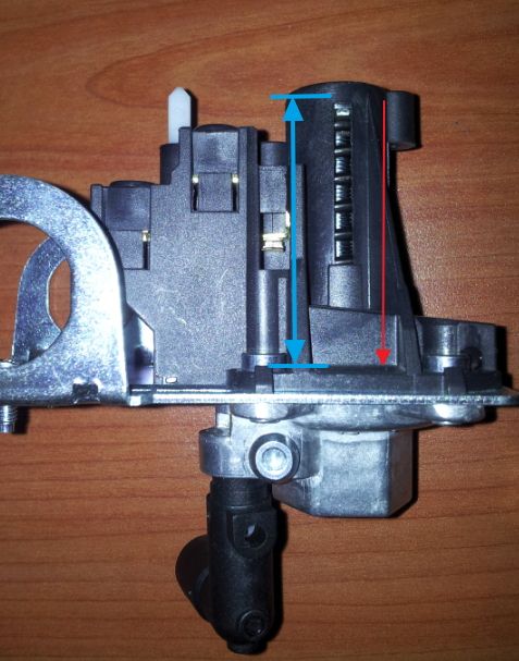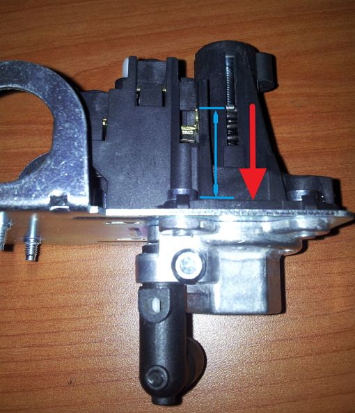 自動/關(guān)閉開關(guān)動作。白色針腳向下推動黑色塑料塊(紅色圓圈)。