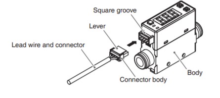 •安裝連接器時(shí),將其直接插入插座,握住控制桿和連接器主體,并推動(dòng)連接器,直到杠桿鉤入外殼,并鎖定。