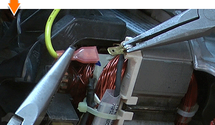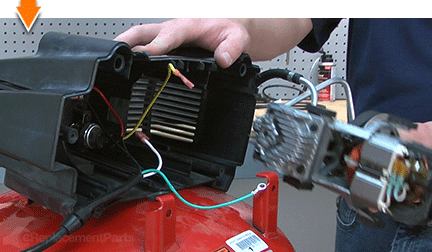 從外殼部分抽出泵/馬達(dá),露出后部導(dǎo)線。