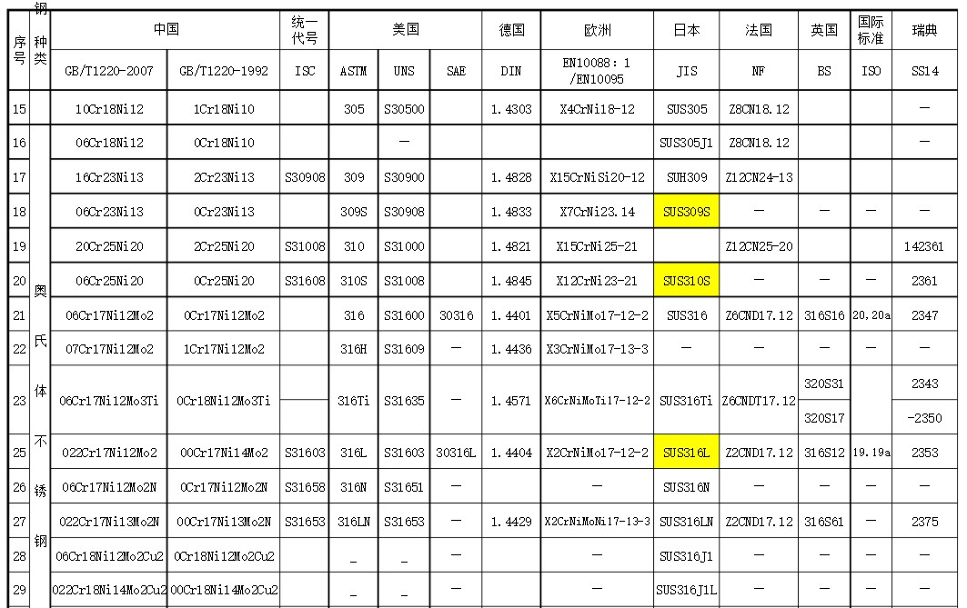 本文基于上述文章,主要是為大家呈現(xiàn)國內(nèi)國外對于流量開關(guān)不銹鋼材質(zhì)所用的一些型號區(qū)別。可見下圖。