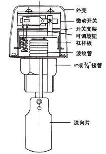 注:流量開關(guān)不能遭水擊,如在流量開關(guān)下游裝有快速閉合閥,必須使用節(jié)流器。