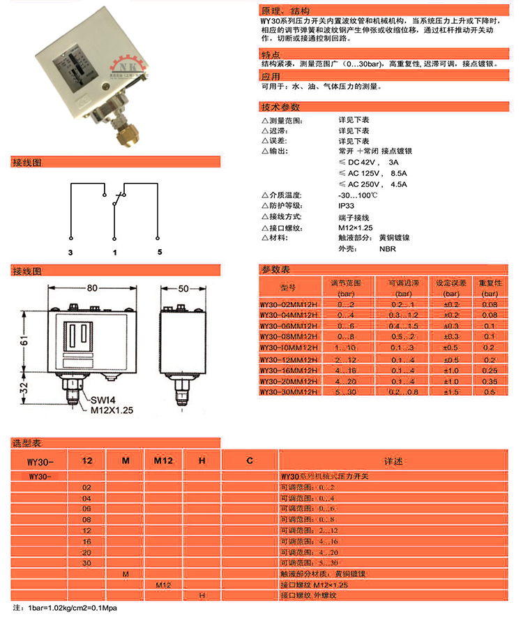 機(jī)械式壓力開(kāi)關(guān)傳感器NY30系列